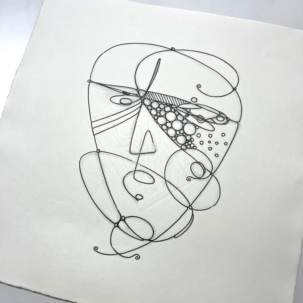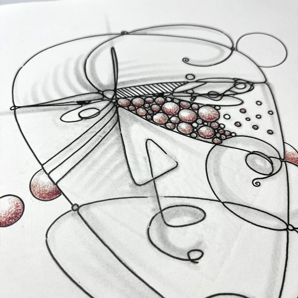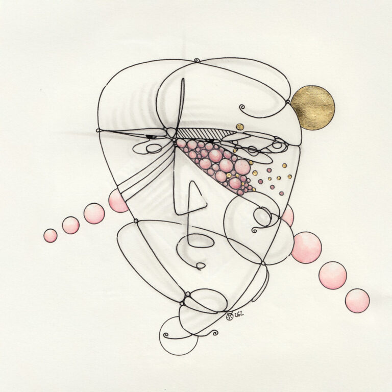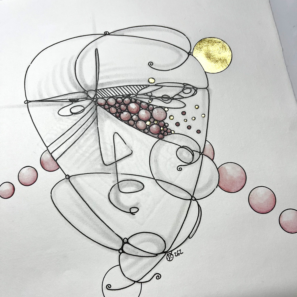 Bleistift, Tusche-Fineliner, Aquarellstift, Blattgold