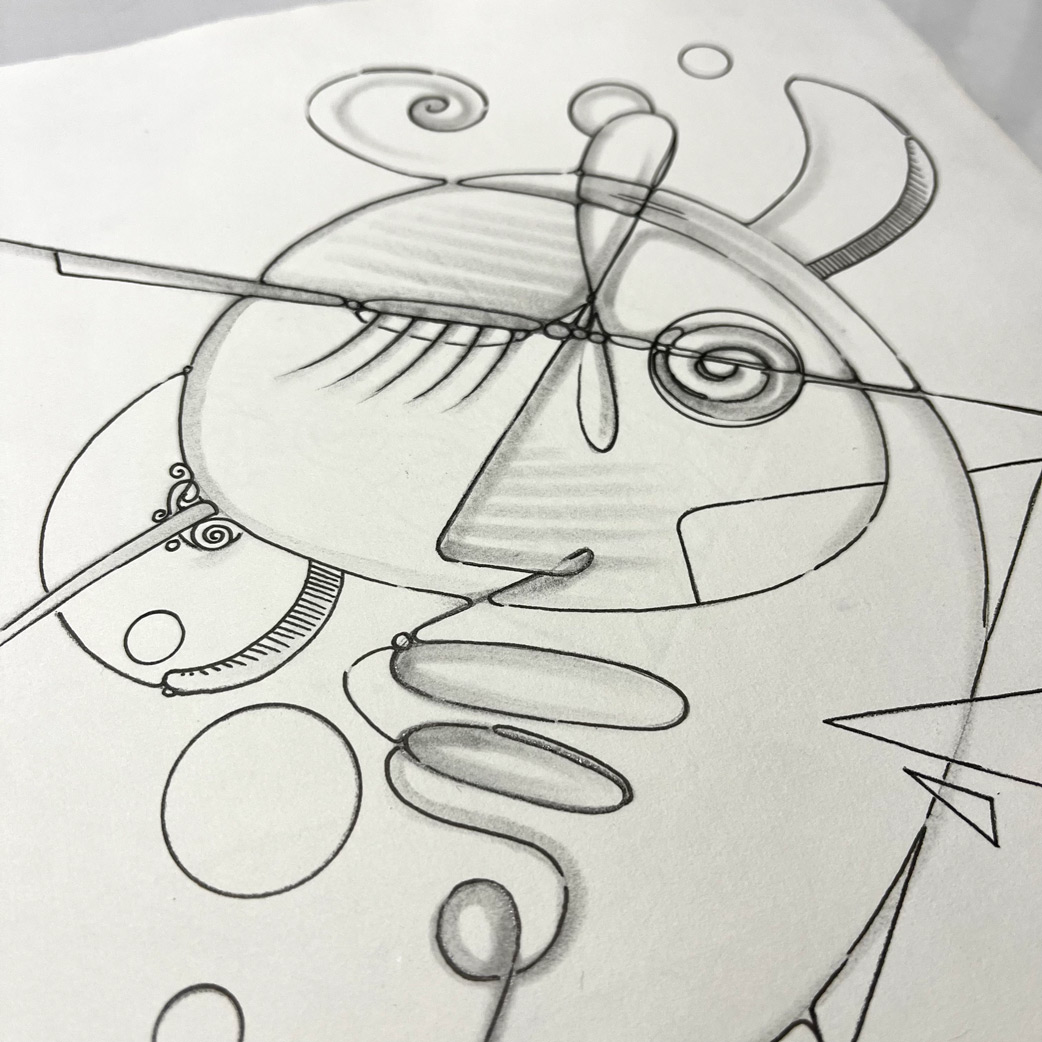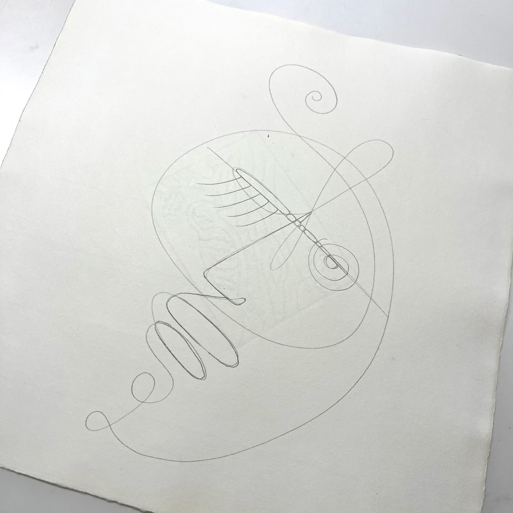 Bleistift, Tusche-Fineliner, Aquarellstift, Blattgold