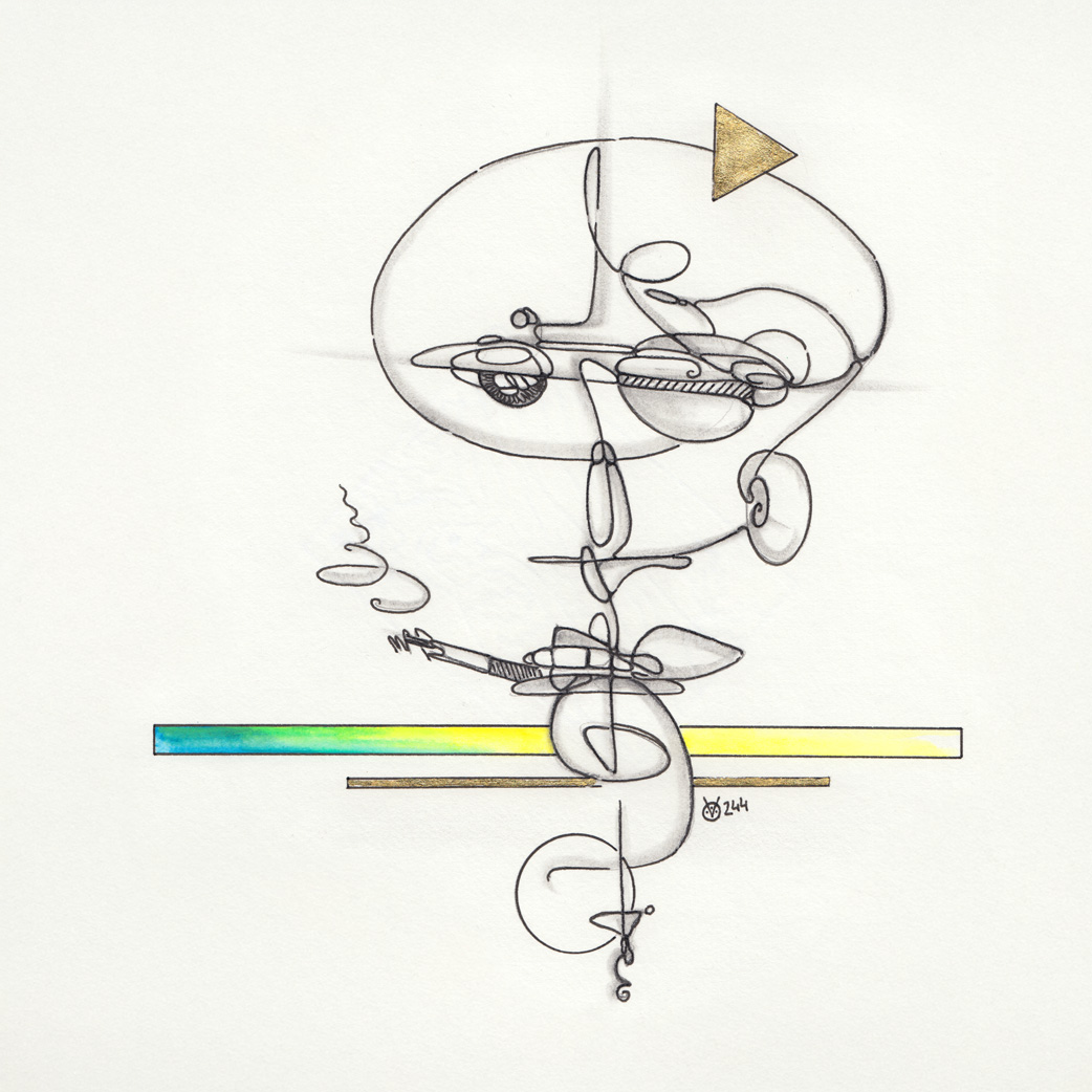 Bleistift, Tusche-Fineliner, Aquarellstift, Blattgold