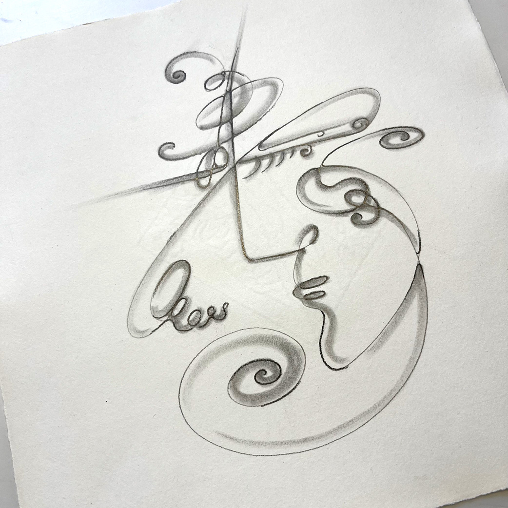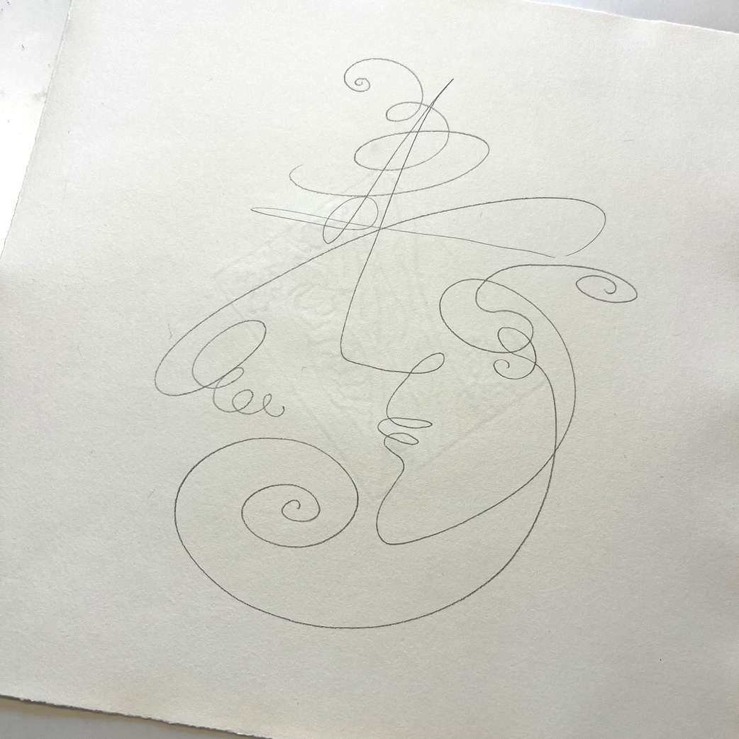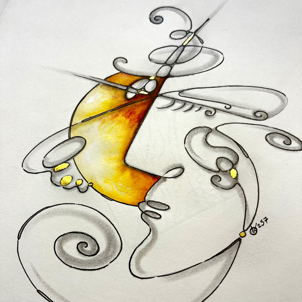 Bleistift, Tusche-Fineliner, Aquarellstift, Blattgold